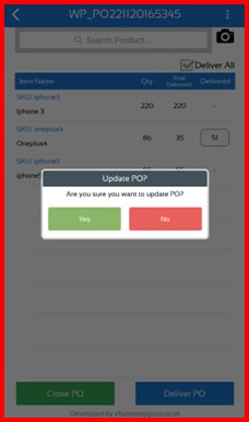 Tap the Purchase Order you want to update – if you have received part of your order, you can update the numbers received by scanning or manually updating