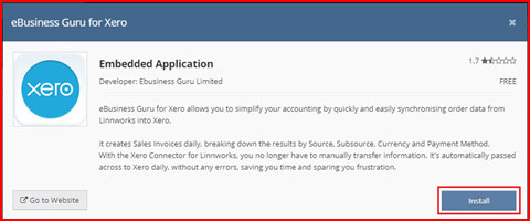 • Click on Install to add the eBusiness Guru for Xero integration App to your Linnworks Account